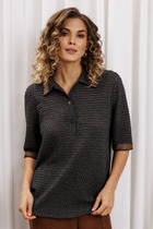 Удлиненная футболка из футера с боковыми разрезами, застегивающимися на металлические кнопки. Свободные рукава со спущенной линией плеча создают объём и свободный силуэт.