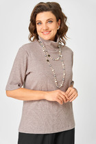Базовый джемпер с короткими рукавами и воротником-стойкой из плотного однотонного трикотажа супрем с добавлением спандекса.