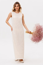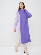 Платье на запах с воротником из плотного набивного трикотажа интерлок. Модель с длинными объемными рукавами. С помощью пояса можно регулировать посадку и силуэт.