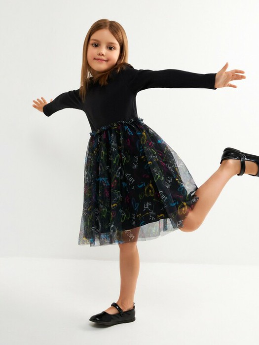 Совместные покупки Омск Детская одежда Платья — Акция по 20.01 Acoola Платье детское для девочек Pencil2 20230200058 черный прин