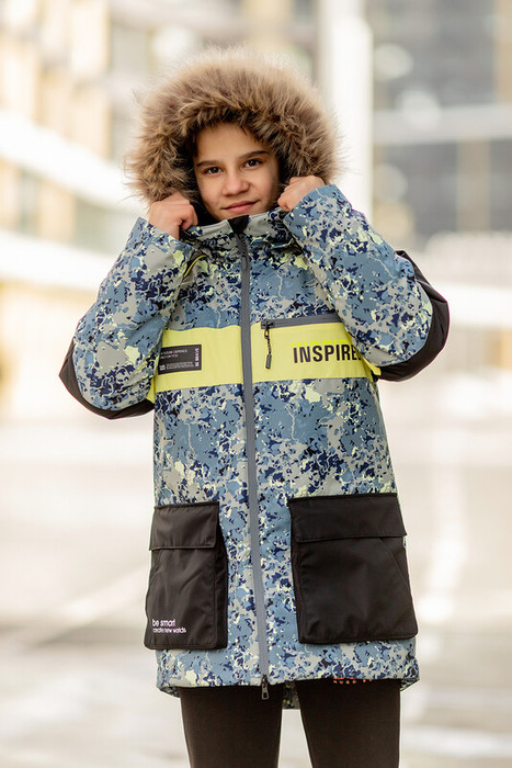 Парка для мальчика Лиман из мембранной ткани с актуальным принтом, напоминающим карту геолокации, яркой неоновой отделкой кантами и вставками по рукавам. Парка на центральной водонепроницаемой двухзамковой молнии, на груди прорезной карман. Два объемных накладных кармана с клапанами и двумя входами: сверху и сбоку. Крой рукава – реглан, по низу рукав регулируется патой на липучке и имеется внутренний трикотажный манжет. У этой модели продуман глубокий эргономичный, регулируемый, втачной капюшон со съемной опушкой и планкой, закрывающей кнопки. Парка декорирована нашивками и термотрансферами. Для плотного прилегания имеется внутренняя утяжка по талии. Внутренний карман на молнии и бретели свободные руки в новом исполнении – на одной лямке.  Особенности:  Съемная опушка  Регулировка объема капюшона  Защита подбородка  Гладкая подкладка в рукавах  Трикотажные манжеты  Бретели свободные руки  Внутренний карман  Регулировка по талии  Светоотражающий декор Характеристики:Ткань верха: Taslon oxford (мембрана) / Twill poly (мембрана) Подклад: poly brushed / 210T Taffeta Утеплитель: 300гр Температурный режим: от -5 до -35СПроизводитель: batik