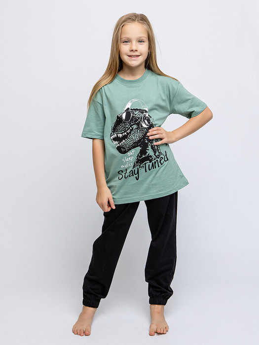 Комплект трикотажный детский: футболка с коротким рукавом и черные брюки. Детский домашний костюм из натурального хлопка. Ткань супрем пенье.Характеристики:Ткань: Супрем пенье 100% хлопокПроизводитель: batik