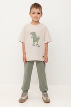 Трикотажные брюки для мальчика из высококачественного трикотажного полотна супрем. Эластичный пояс на резинке регулируется по ширине с помощью шнурка, по бокам два удобных кармана, внизу эластичные манжеты.