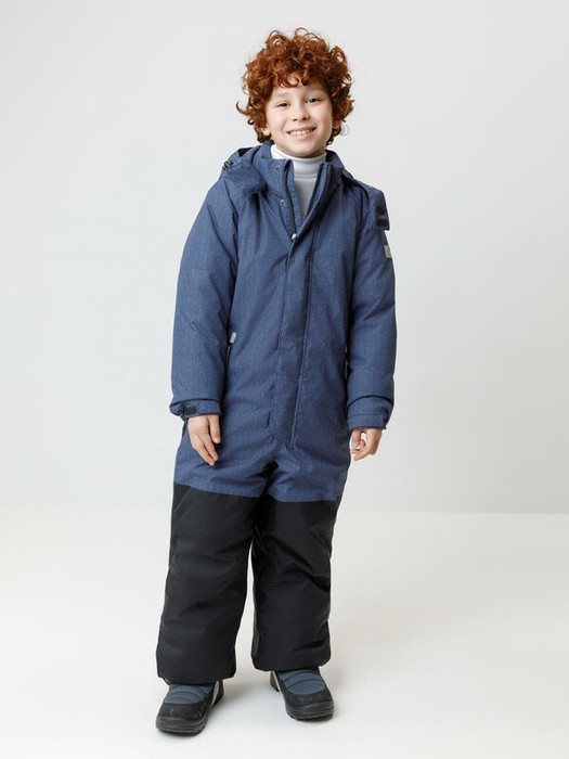Зимний комбинезон для мальчика с утеплителем SEE®: 250 г/м2 . Выполнен из мембранной ткани с дополнительной тефлоновой обработкой, которая предохраняет изделие от загрязнений и отталкивает влагу. Подклад выполнен из 100% полиэстера Tricot. Комбинезон застёгивается на молнию и внешнюю планку на липучках и кнопках, предусмотрена защита подбородка. Съёмный капюшон имеет эластичную утяжку со стопперами. Резинка по спинке обеспечивает лучшее прилегание. По бокам два кармана на молнии. Эластичные манжеты на рукавах  регулируются по ширине с помощью липучки, по низу изделия - с помощью кнопки. Внутренняя противоснежная юбка защищает обувь от попадания снега и удерживает комбинезон в закреплённом положении. В размерах с 98-104 по 116-122  предусмотрены отстёгивающиеся штрипки. Во всех изделиях верхнего ассортимента для безопасности ребёнка предусмотрены светоотражающие элементы.