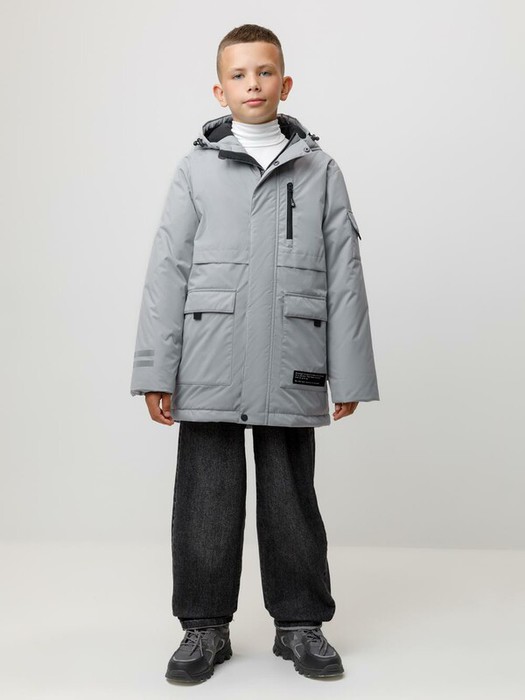 Зимняя куртка для мальчика с утеплителем SEE®: 250 г/м2. Выполнена из мембранной ткани с дополнительной тефлоновой обработкой, которая предохраняет изделие от загрязнений и отталкивает влагу. Подклад выполнен из 100% полиэстера Tricot. Куртка застёгивается на молнию и на дополнительную планку с кнопками. У изделия предусмотрена защита подбородка. Несъёмный капюшон имеет эластичную утяжку со стопперами, глубина капюшона регулируется при помощи липучки. На рукавах внутренние эластичные манжеты. Два накладных кармана с клапанами по бокам и один карман на груди. Во всех изделиях верхнего ассортимента для безопасности ребёнка предусмотрены светоотражающие элементы.