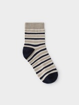 Носки длинные детские с формованной пяткой и эластичной резинкой по краю. Украшены рисунком в полоску. Изделие сохраняет форму и стойкий цвет после многочисленных стирок.