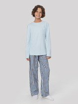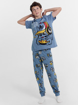 Трикотажная пижама из натурального хлопка. Джемпер с длинными рукавами. У брюк эластичный пояс на резинке. Оригинальная набивка выполнена из стойких, гипоаллергенных текстильных красителей. Пижама сохраняет цвет и форму после многократных стирок. Все трикотажные полотна производятся в соответсвии с нормами Швейцарского сертификата ЭкоТекс.