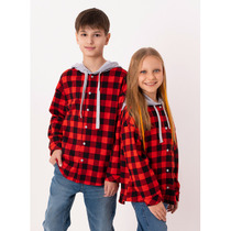 Свободная трикотажная рубашка для мальчика из мягкого петельчатого футера. Застёгивается на кнопки. Модель с закругленным низом и спущенным плечом. Рисунок в клетку выполнен из стойких текстильных гипоаллергенных красителей. Изделие сохраняет цвет и форму после многократных стирок. Все трикотажные полотна производятся в соответствии с нормами швейцарского сертификата ЭкоТекс.