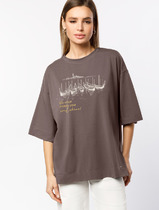 Акция Vilatte Футболка свободного кроя с авторским принтом D49.082 кофе_soul sh