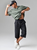 Шорты мужские из трикотажного полотна "кулирка" с набивным рисунком, удлиненные, на притачном поясе с эластичной тесьмой внутри, с карманами в боковых швах, входы в которые окантованы основным материалом.