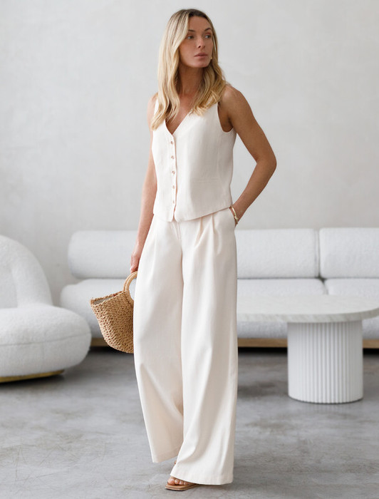 Совместные покупки Омск Женская одежда Брюки — Акция Vilatte Брюки-палаццо из плотного лиоцелла D24.267 кокосово-молочный