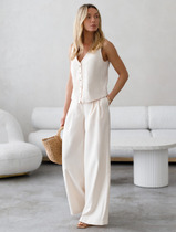 Брюки-палаццо выполнены из полуматового плотного сатина, который плавно струится по ногам, напоминая натуральный шелк. Визуально удлиняют ноги и акцентируют внимание на талии. Совет стилиста: сочетайте брюки в костюме вместе с топом D23.057 и блузкой D29.796 чтобы создать роскошный праздничный образ, или используйте как яркий акцент в базовом гардеробе, с вязаным верхом, полупрозрачной блузкой и топами из хлопка.