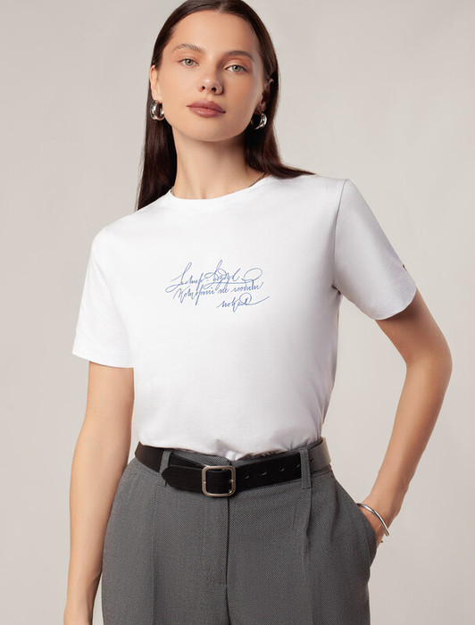 Футболка выполнена из премиального хлопка.Принт "леопард" нанесен фактурными красками с устойчивым покрытием. Наличие эластана в составе гарантирует комфорт и формоустойчивость. Изделие дополнено фирменным металлическим логотипом бренда.