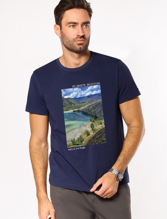 Совместные покупки Омск Мужская одежда Футболки — Акция Vilatte Футболка из премиального хлопка с авторским принтом U49.026 темно