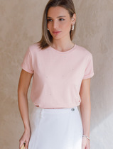 Акция Vilatte Футболка из эластичного хлопка с принтом стразы D49.097 пудра_стр