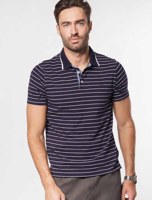 Совместные покупки Омск Мужская одежда Поло — Акция Vilatte Футболка-Поло из премиального хлопка с эластаном U49.025 синий-бе