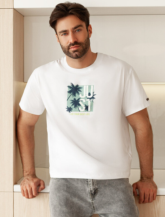 Совместные покупки Омск Мужская одежда Футболки — Акция Vilatte Свободная футболка с авторским принтом U49.048 белый_just
