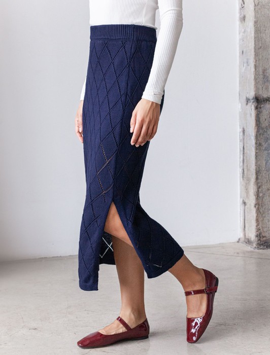 Состав: 100%Хлопок; ПОДКЛАДКА- 100%ПЭ Параметры модели на первом фото: Рост 170, бюст 83, талия 64, бедра 88Юбка прямого силуэта выполнена узорной вязкой из мягкой хлопковой пряжи. Тонкий ажурный трикотаж идеально подходит для теплой весны и лета, в нем будет комфортно и не жарко. Модель дополнена разрезом на ноге и подкладкой из трикотажного полиэстера, такой материал гарантирует формоустойчивость юбки и скрывает излишнюю прозрачность. Сочетается в костюме с джемпером D33.007 и D39.629