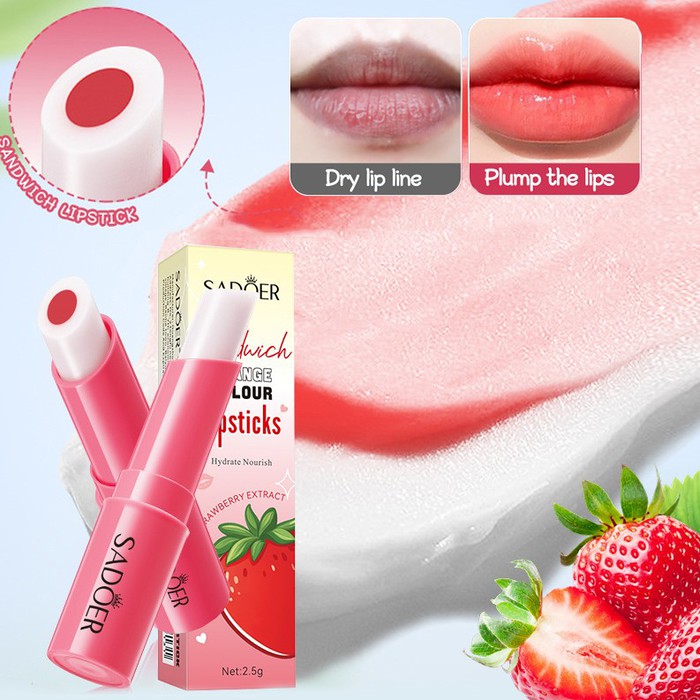 Совместные покупки Омск Косметика и парфюмерия Прочий макияж — Бальзам для губ с Клубникой 2 в 1 "Увлажнение + Оттенок" Sadoer, 2,5 гр.