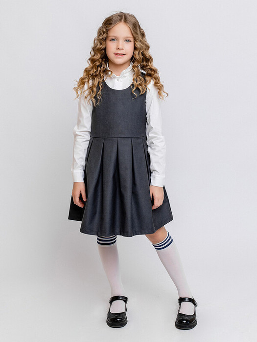 Сарафан для школы серый с боковыми карманами в швах и складками на талии. Круглый вырез позволяет надевать блузки разного стиля. Выполнен из костюмной ткани, состоящей из полиэстера, вискозы и эластана. Характеристики:Ткань:Костюмная ткань полиэстер 77%, Вискоза 19%, эластан 4%Производитель: Batik