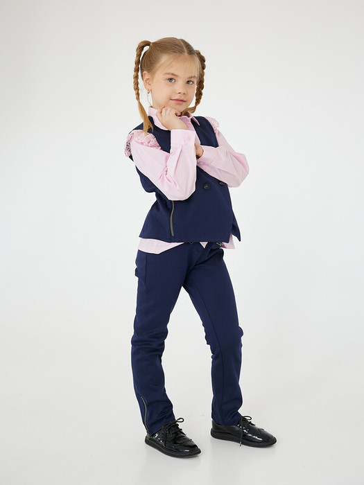Стильные брюки синего цвета для девочки на резинке-утяжке по спинке. Съемная цепь, декоративные элементы в виде имитации карманов и отделки по низу брюк. Зауженный фасон и длина по щиколотку отлично стройнят фигуру.Характеристики:Ткань:Вискоза 83%, нейлон 13%, спандекс 4%Производитель: batik