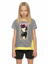 Комплект (футболка + шорты) для мальчика трикотажный из супрема пенье в цвете графит. Футболка с коротким рукавом и принтом в инопланетном стиле.  Приятная на ощупь дышащая ткань комплекта не потеряет свой первоначальный вид после множества стирок.Характеристики:Ткань: супрем пенье 92% хлопок 8% эластан/ ткацкое полотноПроизводитель: batik