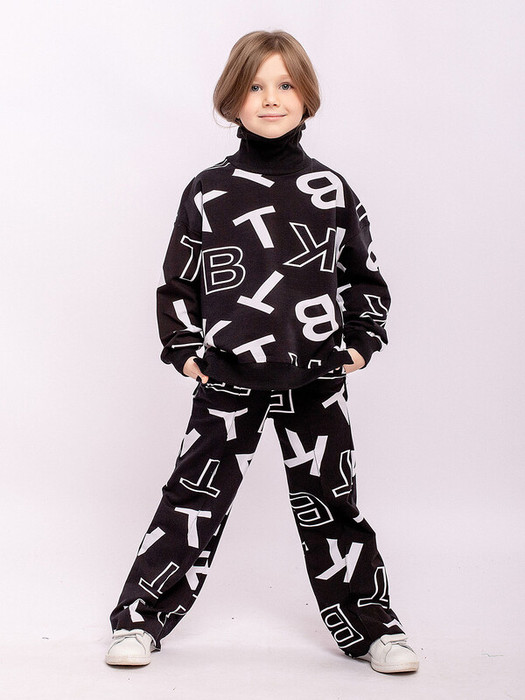 Свитшот детский с длинным рукавом из футера. Черный свитшот с принтом в виде надписей понравится как детям, так и подросткам. А, скомбинировав свитшот с брюками такого же стиля, можно получить ультрамодный комплект.