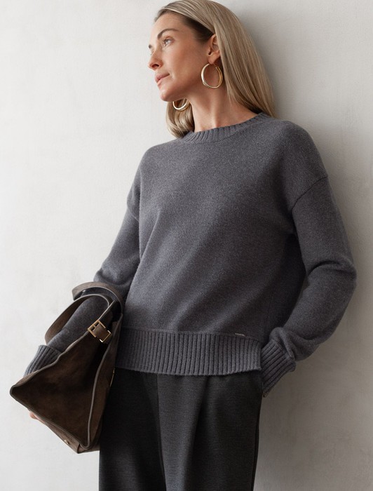 Состав: 52%ПАН (акрил) 33%ПЭ 8%ПУ 7%Кашемир Плотность: 7 GG Размер товара на первом фото: 42Укороченный джемпер темно-серого цвета с круглым вырезом связан из высококачественной пряжи с кашемиром — идеальное сочетание мягкости и практичности. Пряжа с кашемиром придаёт ему бархатистую нежность и тонкую структуру, каждое прикосновение с которой, напоминает о тепле и уюте в прохладные дни. Благодаря нежной текстуре материала этот вариант отлично подходит даже для чувствительной кожи, не вызывая раздражения и дискомфорта в течение дня. Сдержанный, элегантный силуэт джемпера подчёркивает вкуc обладательницы, а филигранная отделка ворота — внимание к деталям. Универсальный оттенок и изящная мягкость делают его идеальным выбором в любой ситуации Широкие манжеты и нижний край добавляют аккуратности, а продуманная посадка и небольшие разрезы по бокам делают повседневный джемпер удобным для многослойных образов — от офисного комплекта до расслабленного уикенда. Свободный крой джемпера идеально подходит для женщин, которые ценят удобство и стиль одновременно, а так же идеальноподходит на большие размеры. Благодаря качественной пряже свитер сохраняет форму и внешний вид даже после многократных носок.