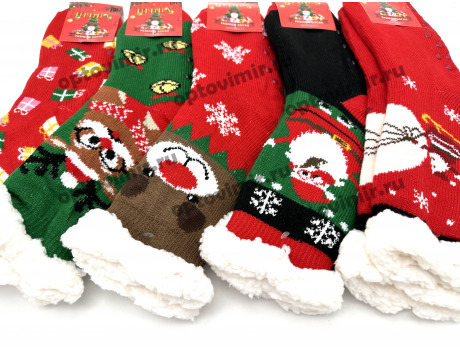 БЕЗ ВЫБОРА! Домашние носки-бурки женские с новогодними принтами пушистые HN05