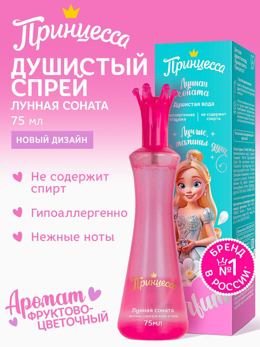 * Аромат росистого яблока, бутонов чёрной смородины, свежей фрезии и соблазнительные ноты древесины раскрывают самые разные грани настроения маленькой принцессы.