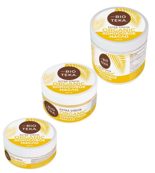 100% органическое нерафинированное кокосовое масло первого холодного отжима из свежей мякоти кокоса.