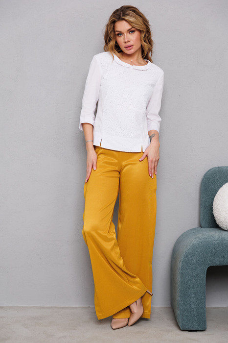 Изысканная блузка с отделкой из ришелье по переду и ракавам. Очень интересный эффектный воротник и кокетливые разрезики по низу переда.