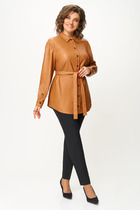 Оригинальная женская блузка из хлопковой ткани  типа поплина. Легкая и пратически невесомая.  Модель one size подойдет на размеры с 50 по 60. Благодаря своему необычному крою станет изюминкой любого гардероба. Принт полоска в блузке-платье удлинняет и стройнит силуэт. Она идеально подходит для похода в ресторан, клуб, или на работу в офис или на прогулку с подругами. В жаркую погоду можно носить с велосипедками, полчив look спорт-шик. Надев под узкие брюки или облегающую юбку вы получите look old money. Блузка идеально срывает все недостатки фигуры, подчеркивая красоту ног. Застежка на планку и пуговицу. Воротник на отрезной стойке. По полочке идут рельефы с отверстиями для сьемного пояса-шнура. Низ фигурный.  Рукав цельнокроеный с подрезными манжетами и сборкой. Пояс в комплекте. Эта блузка необычного кроя подразумевает нестандартный подход к сочетанию вещей, изящность, игру с текстурами, формами и цветами, а так же смелость в экспериментах с силуэтами plus  size.  Длина (по спинке):  100 см.  Длина рукава с манжетой: 49см.
