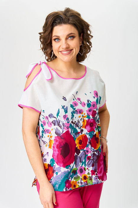 Совместные покупки Омск Женская одежда Блузки, рубашки — Блуза ANDINA CITY 5031-25 белый+фуксия