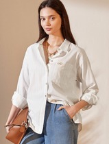 Vilatte Блузка свободного силуэта в тонкую полоску из эластичного хлопка с добав