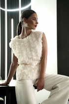 Элегантная блуза с асимметричным низом выполнена из приятного на ощупь креп-шифона. Эту модель легко вписать и в повседневный образы, дополняя брюками, джинсами, юбками или лосинами.