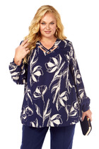 Рукав втачной, со слегка спущенной линией плеча. Низ обработан манжетой с функциональной застёжкой. Низ блузы фигурной формы и застрочен вподгибку.