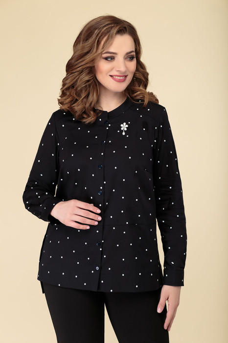 Совместные покупки Омск Женская одежда Блузки, рубашки — Блуза ДаЛи 5373Б темно-синий+горох