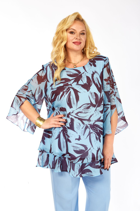 Совместные покупки Омск Женская одежда Блузки, рубашки — Блуза Элль стиль 2213/12а голубой/кофе