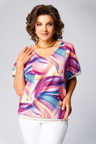 Блуза прямого силуэта из принтованной ткани. По центру полочки застежка в виде планки на миниатюрные пуговицы, что служит декоративным элементом изделия. Полочки с накладными карманами. Воротник стояче-отложной, рукав втачной, внизу обработан притачной манжетой. Спинка с отрезной кокеткой, и встречной складкой, для повышенной комфортности. В боковых швах небольшие разрезы.