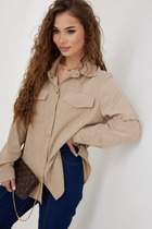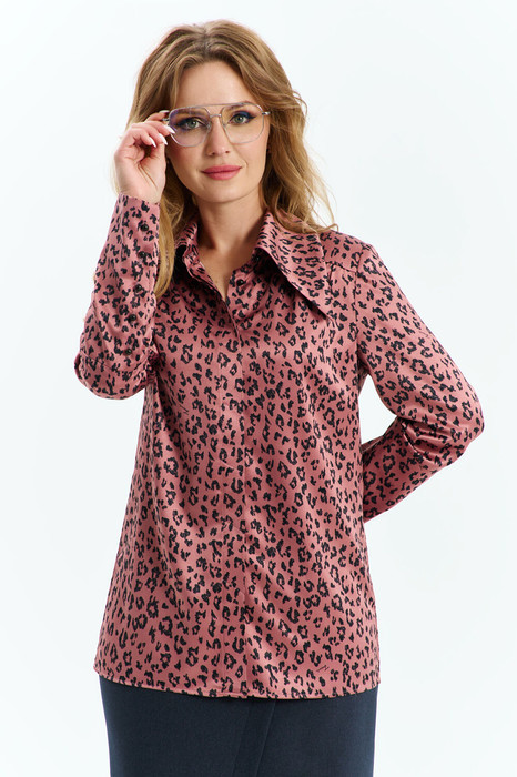 Блуза женская выполнена из гладкой струящейся ткани с сатиновым блеском. Горловина отложной воротник на стойке, рукав втачной длинный, по низу рукава расположена высокая манжета с застёжкой петли пуговицы. По переду изделия расположена потайная планка с застёжкой петли пуговицы. по спинке изделия расположены таллиевые выточки.