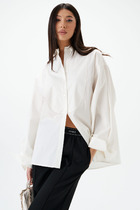 Элегантная дизайнерская блузка со складками выполнена из нежного щелк атласа с матовым блеском и декором из жемчуга отлично впишется в ваш гардероб, легко сочетать как с брюками так и с юбкой. Блузка прямого силуэта со средним швом и V-образным вырезом с мягкими складками по горловине от плечевого шва, средний шов украшен пришитыми жемчужинами. Спинка цельная, линия низа фигурная. Рукав втачной с притачной манжетой, застегивается на жемчужные пуговицы.