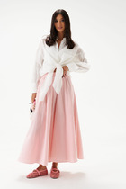 Блуза прямого силуэта из хлопковой ткани с фигурным низом. Воротник рубашечного типа с центральной застежкой на петли и пуговицы. Рукав втачной с декоративным вырезом, по низу завязки. На спинке кокетка и декоративные складки. В боковых швах по низу блузки разрезы. Обращаем ваше внимание, что фурнитура может отличаться от фото.