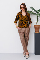 Эффектная блузка свободного силуэта из шифона синего цвета. V-образный вырез изделия обработан внутренней бейкой. Блузка со спущенной проймой и втачными рукавами. Рукава и низ изделия - обработаны окантовкой. Длина изделия по спинке от плечевого шва до низа изделия — 60 см. Рост фотомодели - 170 см.