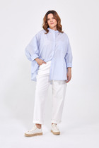 Роскошная блузка полуприлегающего силуэта из текстильной ткани черного цвета. Фигурный вырез и перед изделия дополнены широкой оборкой с декоративным элементом в форме цветка. Втачные рукава дополнены оборкой. Длина изделия по спинке от плечевого шва до низа изделия - см. Рост фотомодели - 170 см