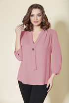 Блузка женская прямого силуэта. Перед с нагрудными вытачками от боковых швов. Спинка разрезная, вверху на спинке застежка на воздушную петлю и пуговицу. Рукав втачной одношовный длинный по низу со сборкой и на манжете, застегивающемся на петлю и пуговицу. Вырез горловины - лодочка.