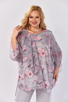 Блуза Элль стиль 2460а серый, розовый принт