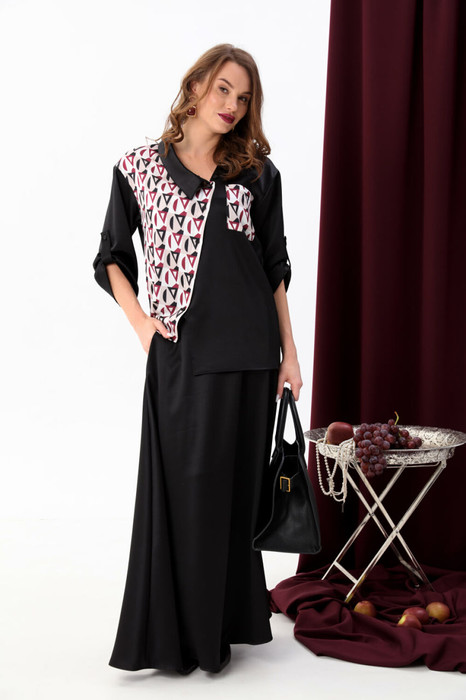 Совместные покупки Омск Женская одежда Блузки, рубашки — Блуза NIKVA н902-3 чёрный+ромбы бордо