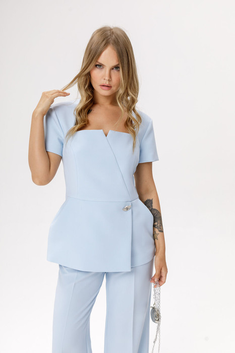Приталенная асимметричная блуза с короткими рукавами (приобрести брюки с фото можно по арт. 5825 или брюки-клеш 6343).