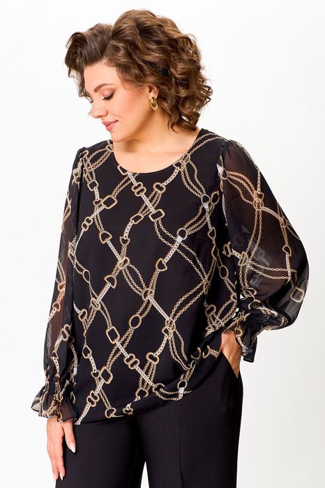 Блуза Swallow 803 черный+принт цепи